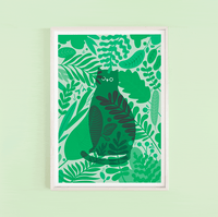 Cat peeking through the leaves watching the world go by in a nice range of green tones or white kitty peeking through colourful peachy leaves.