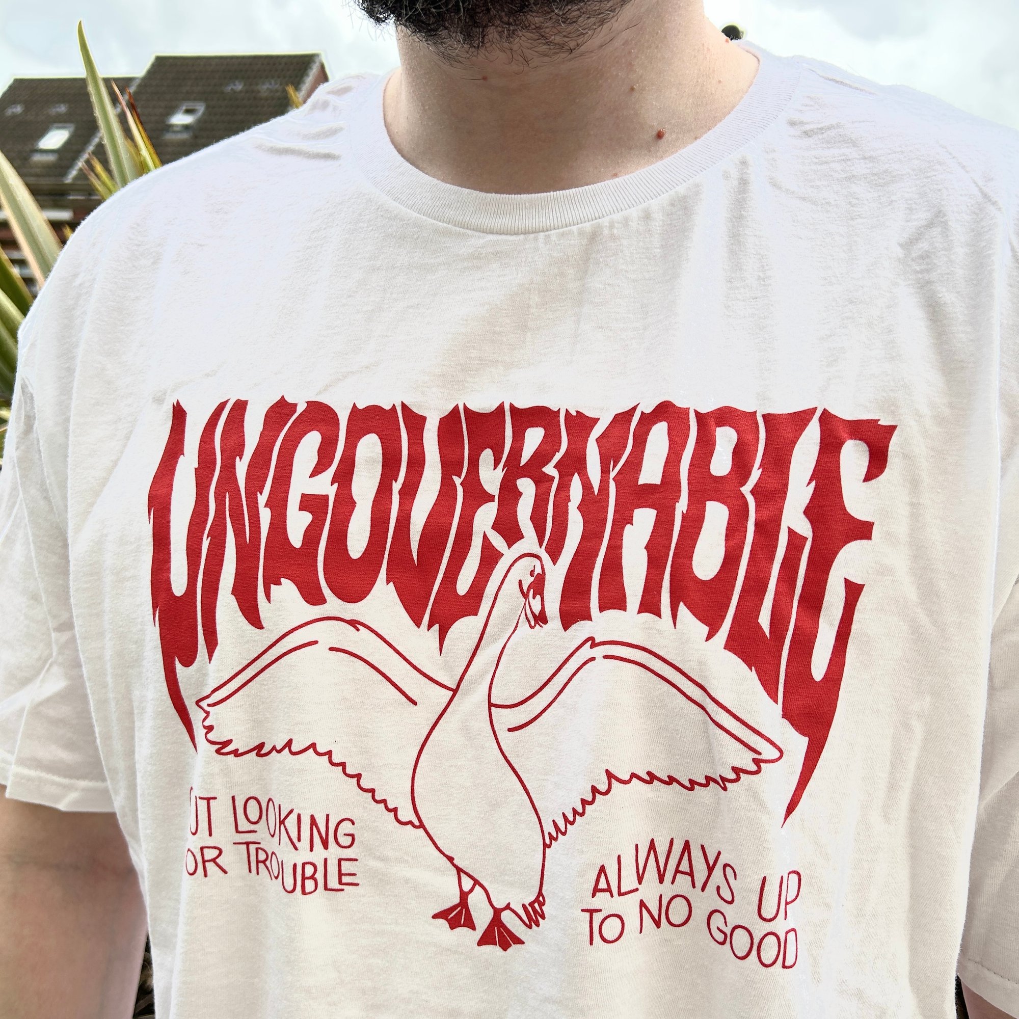 Inspired by the Ungovernable swan in Bruges who would not obey. You can now display the same energy. Hand drawn illustration and lettering screen printed on to a 100% cotton softstyle tee shirt. Printed by hand in the UK with water based inks.